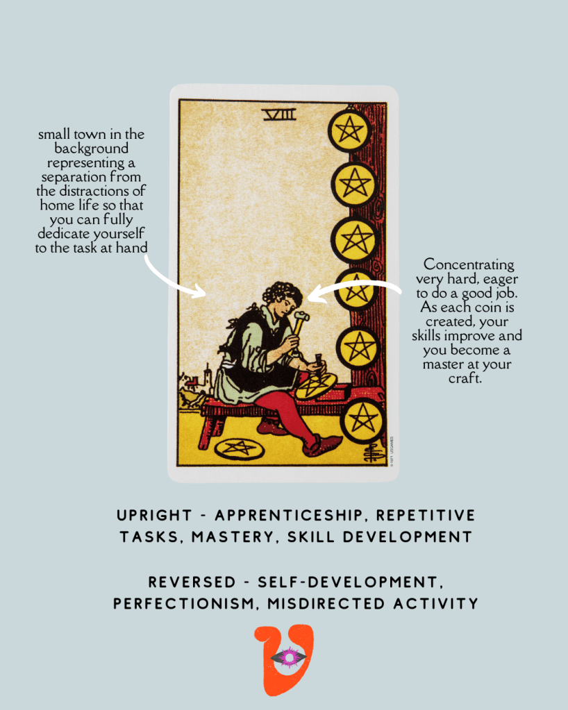 So what does it mean when the 8 of Pentacles won’t stop knocking?